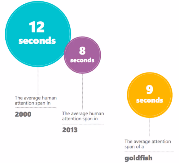 So, if you didn't know already, our attention spans have plummeted in the past few years. We're now floating around eight seconds, which is actually shorter than your average goldfish.