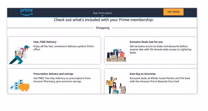 - A subscription model with benefits like free shipping, exclusive deals, early access to offers etc.