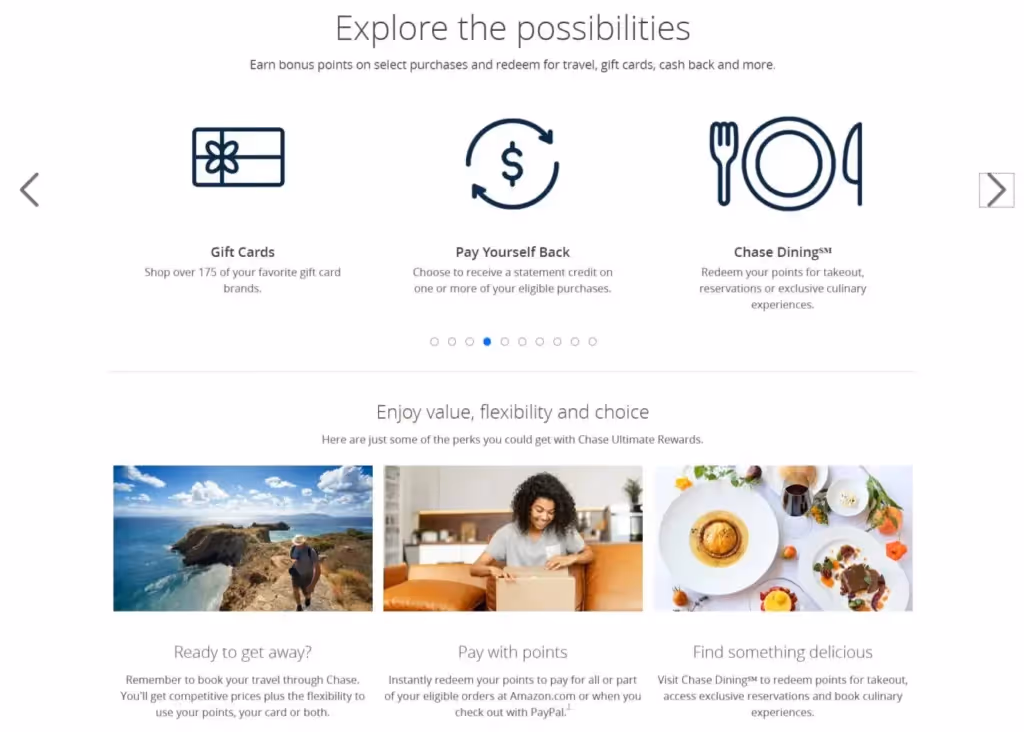 The Ultimate Rewards program stands out for its flexibility and value, allowing customers to earn points across a broad spectrum of transactions, redeemable for travel, merchandise, gift cards, and even cash back.