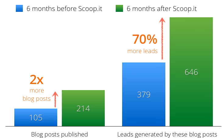 Taking it further, marketers can then find out the ROI of their efforts with in-built measuring tools and predictive insights. For many marketers, finding relevant, high-quality content to share across social is a hugely time-consuming activity, and without knowing the data behind their strategy, it can often be difficult to know what's working and what's not. This is where Scoop.it picks up the slack, providing both great content as well as statistics on how that content is performing. A Silicon-valley based SaaS company had tried outbound marketing and advertising to increase leads, but wanted to to add content marketing as another potential channel. They implemented the Scoop.it Content Director, which provided solid analytics for leads generated from the content they shared.