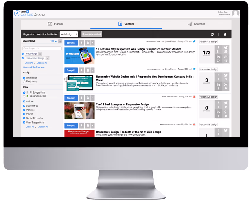 TrueLoyal lets you bring together consumer-created content by pulling in hashtags from a range of platforms and letting you display the curated content on a display stream, whether that's on a website, at an event, or on a digital billboard. UK-based shopping district, Oxford Street, implemented TINT to pull real-world content from a major event onto their website so that the rest of the globe could join in the fun. As a result, they garnered more than 93 million impressions across social media and reached consumers across the planet.[embed]https://vimeo.com/145890462[/embed]7. Scoop.itScoop.it is now used by more than 2.5 million marketers around the world to search for keyworded content. The platform lets brands find content around a specific subject and share that content directly onto their social channels or embed it onto a webpage.