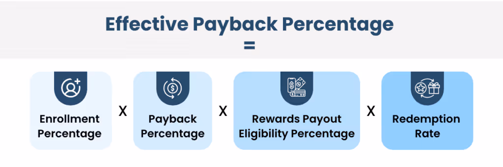 Effective Payback Percentage = Enrollment Percentage X Payback Percentage X Rewards Payout Eligibility Percentage X Redemption Rate
