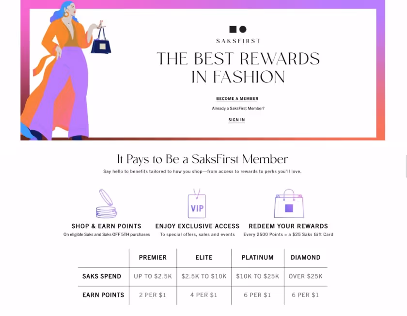 Saks fifth avenue has a loyalty program named – SaksFirst. The multi-tiered loyalty program has numerous rewards for customers.