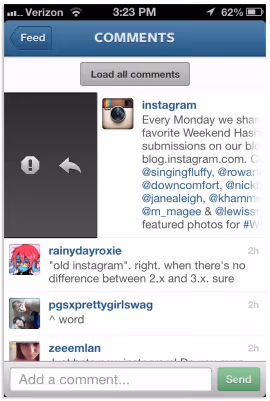 Every time you take a photo, you should hashtag it with a relevant or popular tag to get more exposure. Believe it or not, people search for hashtags on Instagram on particular topics. That being said, you should consider adding 1-3 hashtags per photo (more than that just looks like spam—and people don't like that). When you do, you give the photo more opportunities to be found and interacted. The more people find and interact with your photo, the more likely they will check out your Instagram profile and follow you for more great photos.Here are the top 20 tags on Instagram today:#love#instagood#me#cute#tbt (throwback Thursday)#photooftheday#follow#eyes#beautiful#happy#girl#l4l#instacollage#picoftheday#throwbackthursday#christmas#instadaily#nice#like[caption id="attachment_12783" align="aligncenter" width="420"]