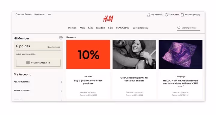 H&M's forward-thinking approach to sustainability shines through in its Loyalty Program.The coveted ‘Plus Member' tier offers enticing privileges like early event access, birthday treats, and exclusive collections, making it an enticing goal for shoppers. By incentivizing actions like reviewing products and updating profiles, H&M ensures continuous engagement, reaffirming its commitment to fostering a community of fashion-conscious, environmentally-aware customers.